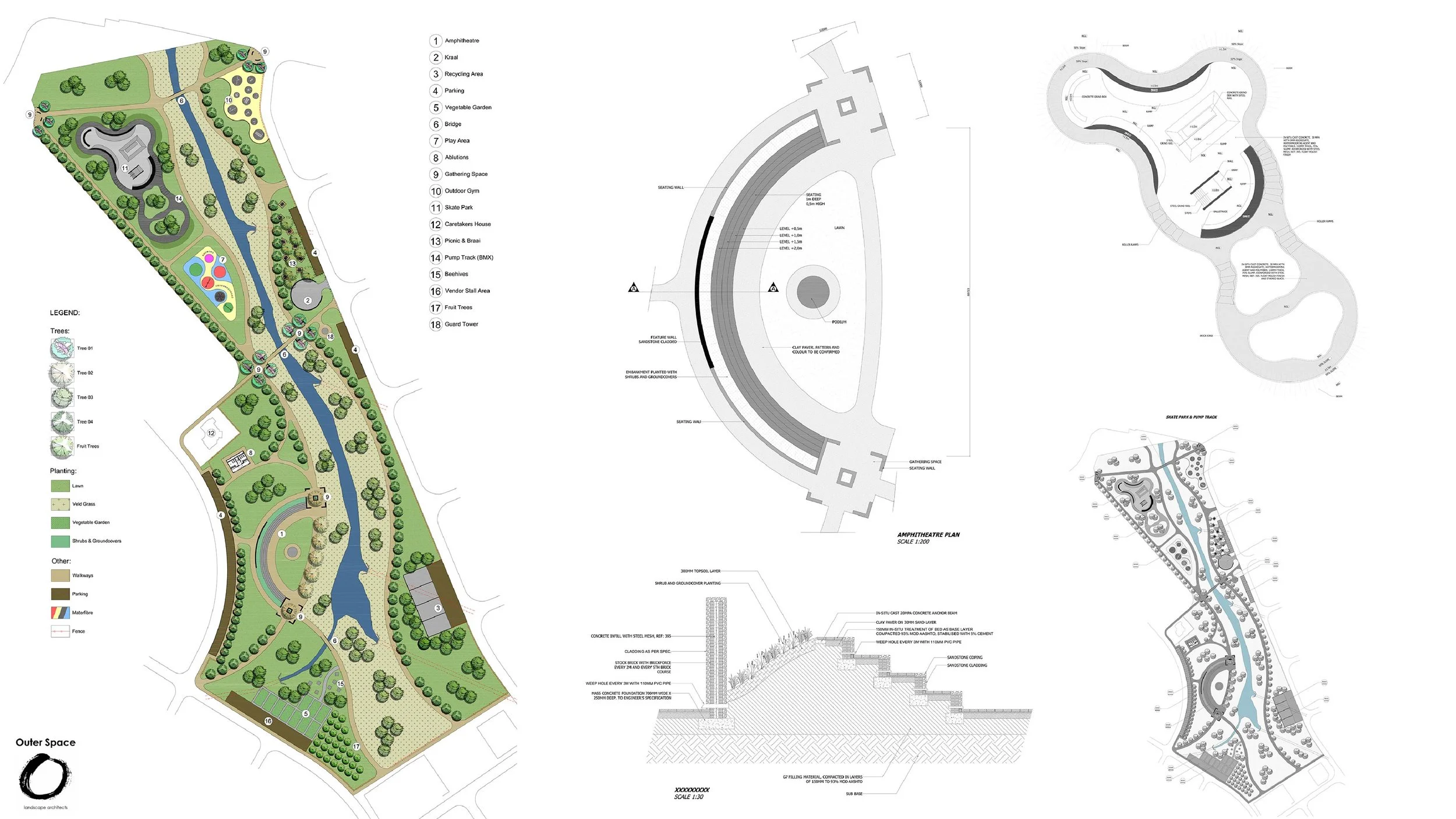 The park had to provide a safe environment for the community and adequate recreational areas. Elements of the design included an outdoor gym, play area, a multipurpose court and picnic area. Some of the main considerations in the design was pedestrian circulation.
